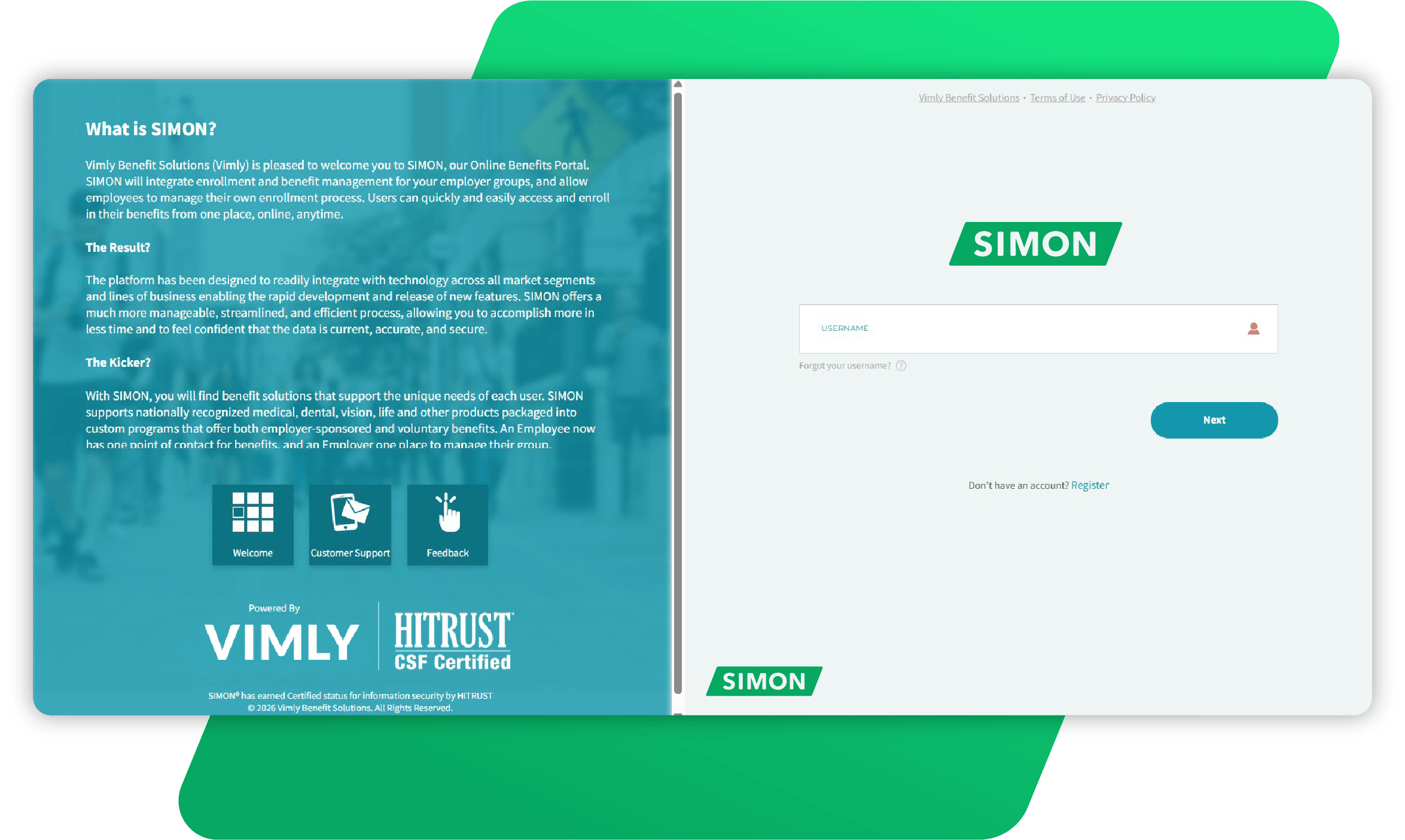 Protect your data with confidence. SIMON is HITRUST certified and built to HIPAA, ERISA, and DOL compliance standards at every layer, supported by role-based permissions and multi-factor authentication.